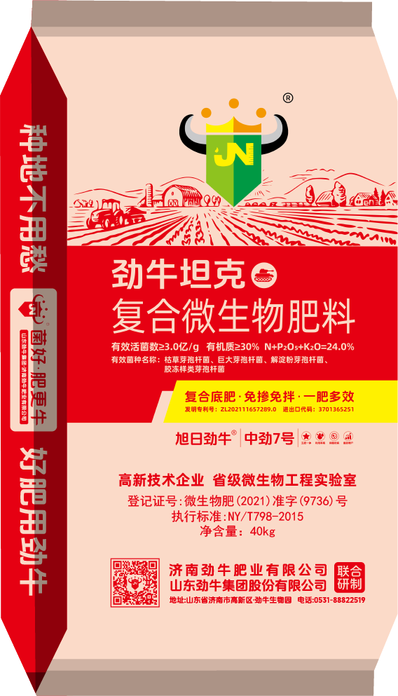 本品是集有機、無機、微生物于一體的大三元復合底肥,由勁牛集團、濟南勁牛肥業(yè)有限公司聯(lián)合研制,有機負載無機、生物促進轉(zhuǎn)化,大三元復合、相互補充、相互促進。